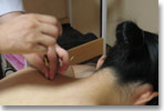 鍼の鍼柄(しんぺい)部分にもぐさを取り付けて燃焼させ、その輻射(ふくしゃ)・伝道熱で身体を温めます。血行がよくなり芯までぬくもるので、冷えが改善されます。とても気持ちがよく、眠ってしまう方もおられます。